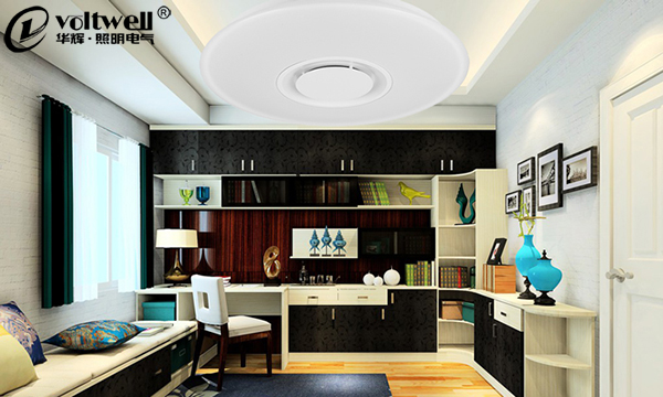 書房是我們學習和工作的重要地方,長時間的伏案寫作和學習,使眼睛的壓力驟然增大。為了保護我們和孩子的眼睛,一定要選擇亮度穩定的燈。普通的節能燈和日光燈,發出的光線雖然是白色的,但由于它是50hz的交流電直接點亮,所以燈的亮度會不停的變化,這就是我們常說的日光燈的頻閃現象。長時間在不斷閃爍的燈光下學習,眼睛也會感到疲勞。建議選擇LED吸頂燈,符合我們及孩子長時間在燈下閱讀的要求,是非常理想的護眼燈。