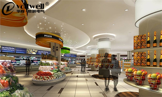 在現今的商超照明中,燈具已經不僅僅是一般的照明工具,還是環境的點綴,燈光設計儼然成為商超建設的重要部分。除了一般照明外,還可以運用燈具裝飾、美化商超空間,打造華麗、溫馨的商超氛圍。
