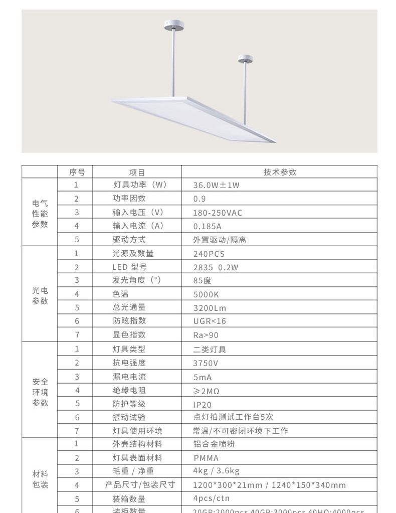 產品規格 :36W 1200x300 側發光